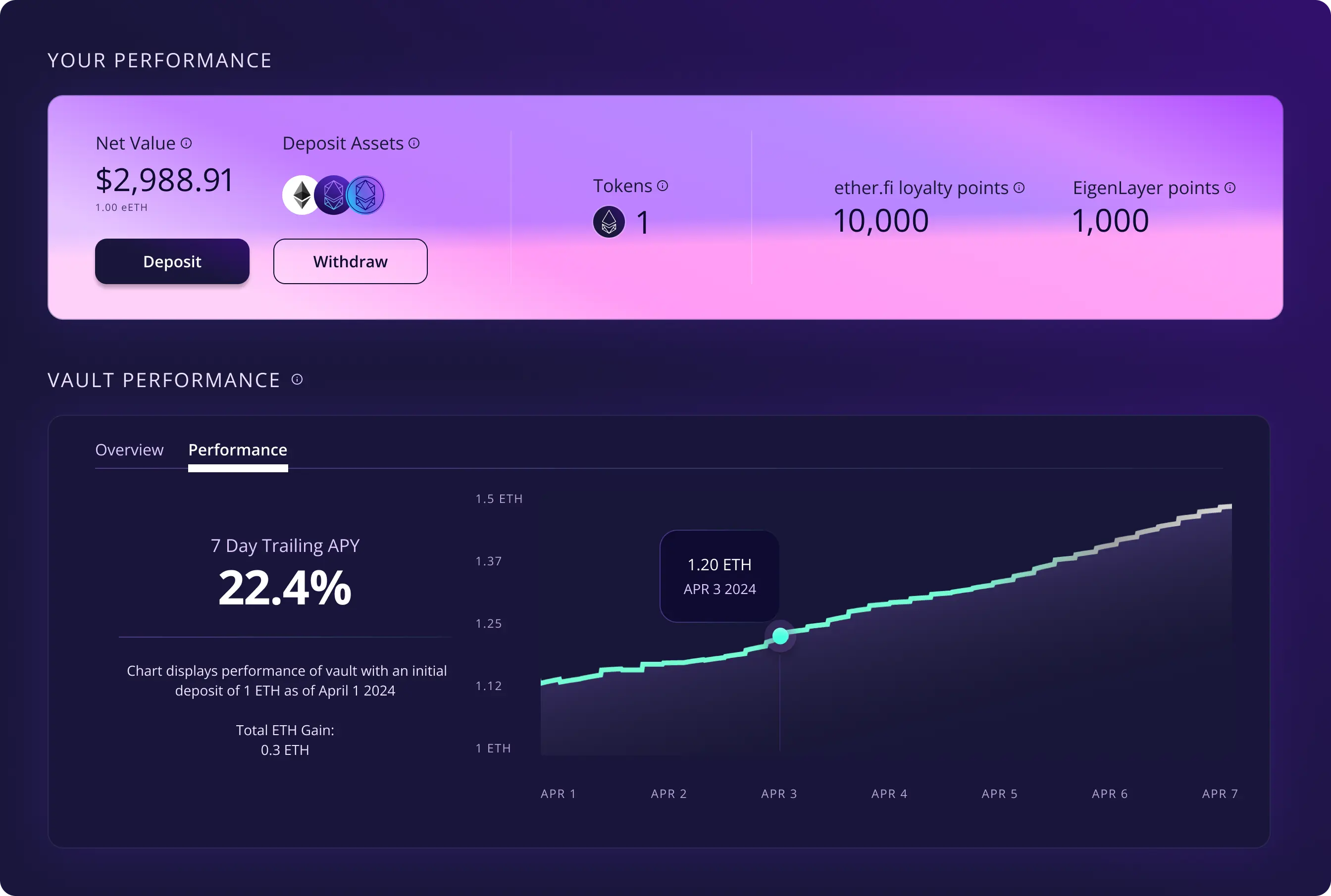 Stake ETH, get eETH - the liquid restaking token that rewards you more across DeFi.APR